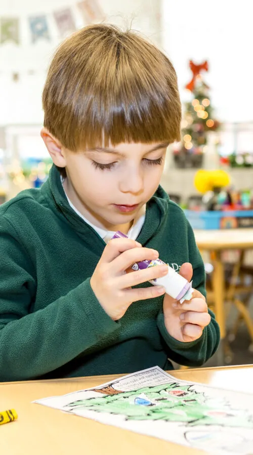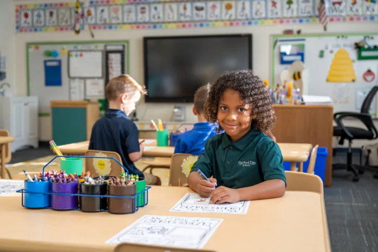Art instruction at Harford Day School is interdisciplinary and related to topics being studied in social studies, science or other subjects. This holistic approach is no different in Kindergarten. Using different media from clay to paint, students learn about a subject from many different perspectives in an age-appropriate manner. Apples, ladybugs, snowmen, trees—you name it. Amazing works are created as the art teacher skillfully breaks down each project into fun, creative steps that hone the children’s fine motor skills.
